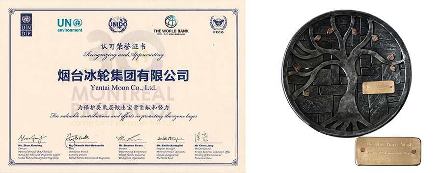 冰輪環(huán)境作為我國唯一企業(yè)榮獲聯(lián)合國“保護(hù)臭氧層示范項目獎”。