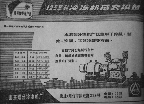 3月,公司更名為“煙臺冷凍機(jī)總廠”。