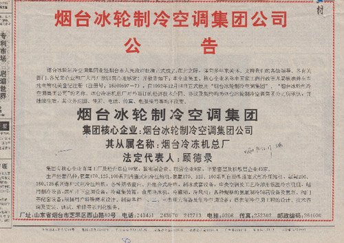 11月,煙臺冷凍機(jī)總廠股份制改革,公開向社會自然人發(fā)行股票。