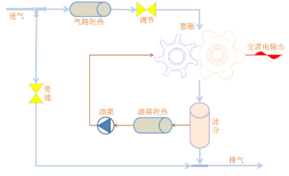 噴油螺桿式壓力直膨發電機組主要應用于有壓力能可用的場合:天然氣城市門站降壓利用、管道天然氣降壓、井口天然氣降壓、工藝氣體降壓利用、工藝氣閃蒸降壓利用、油氣井口壓力能利用、化工廠馳放氣壓力能利用等。